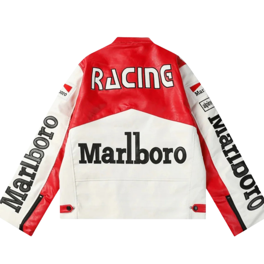 White Marlboro Leather Racing Jacket